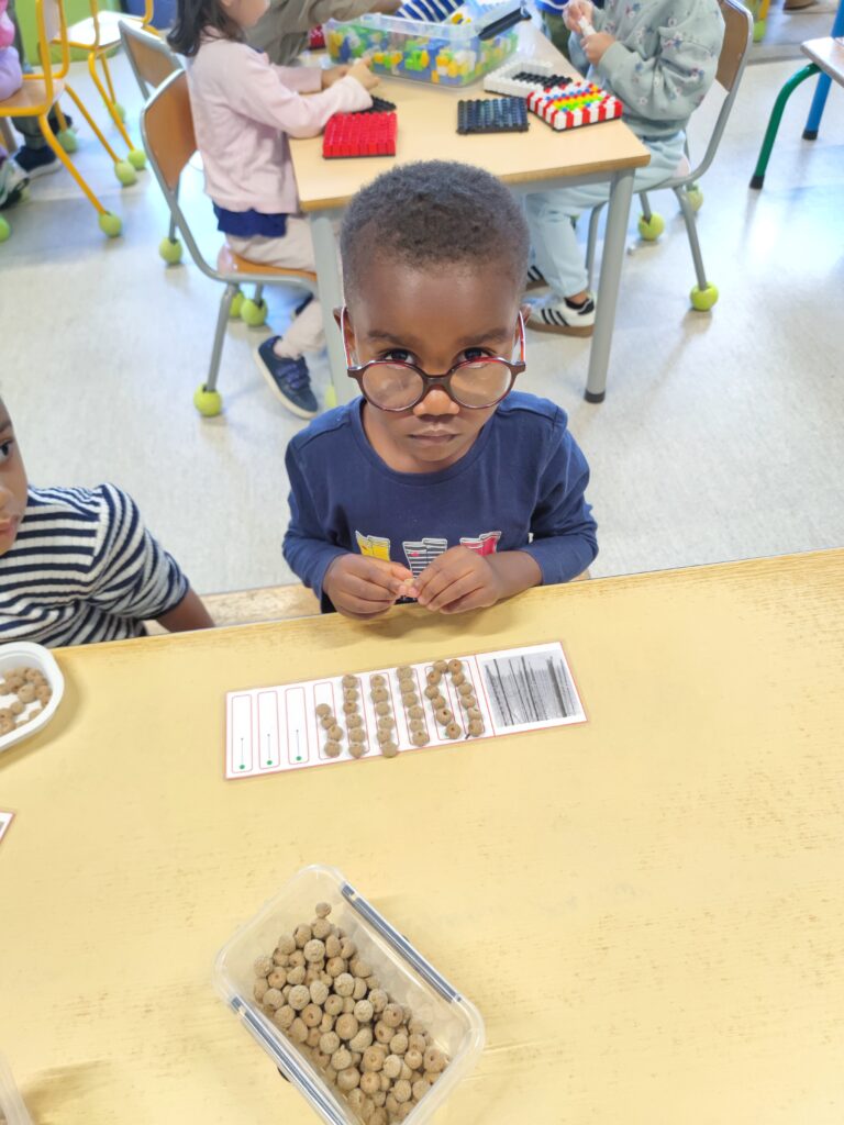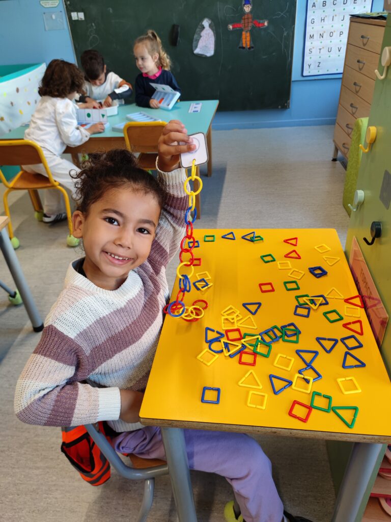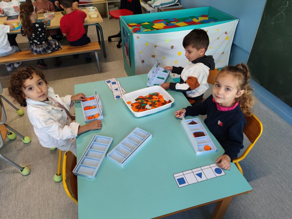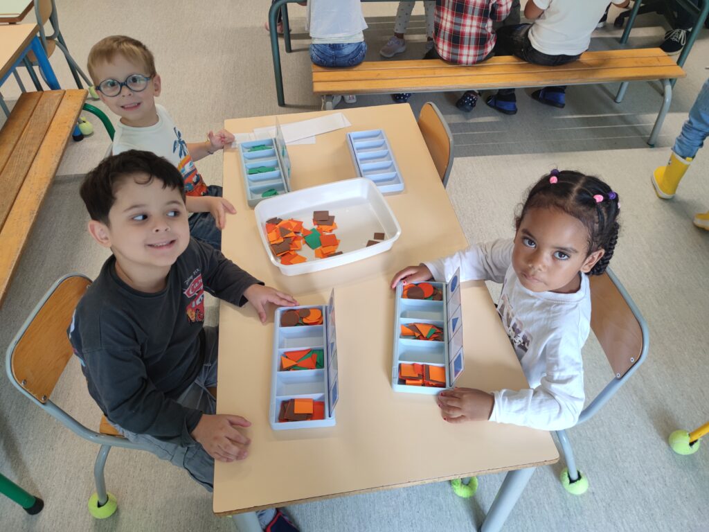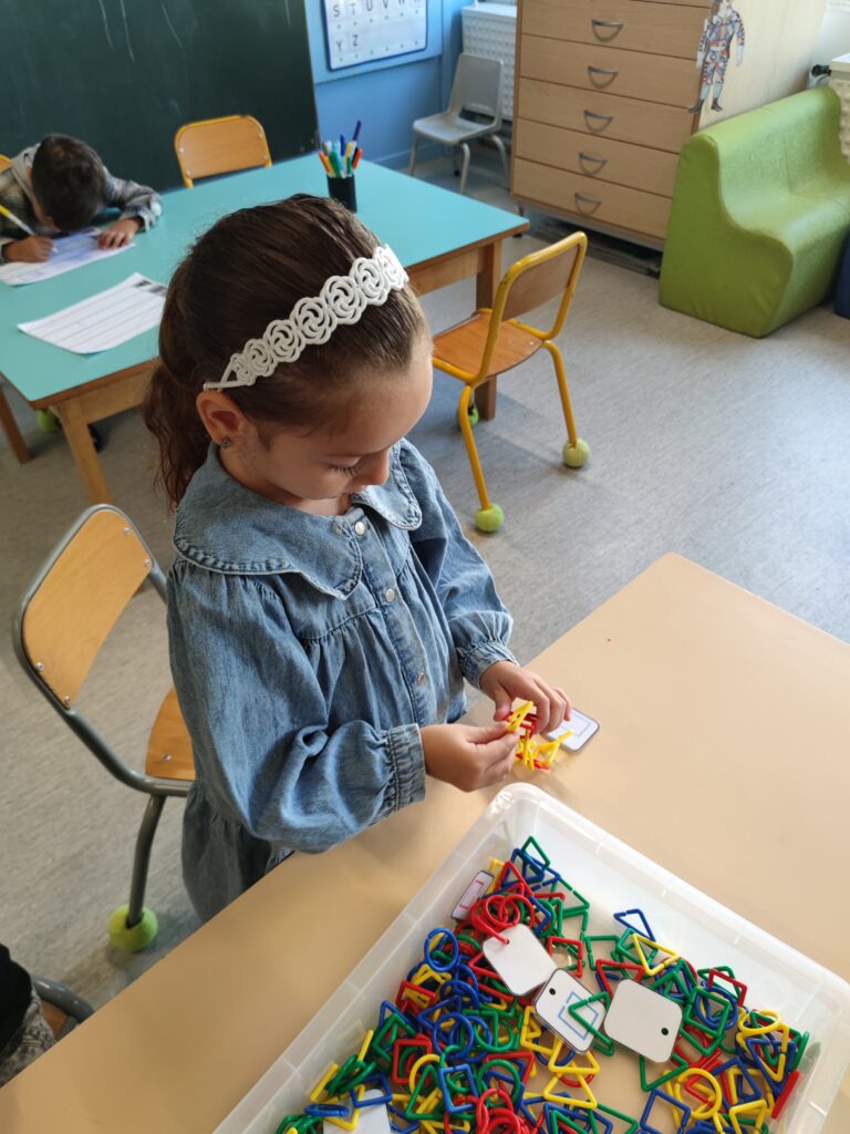 L’élève tire une carte de jeu. Il dénombre les formes et prends autant de cubes. Il place les cubes autour de sa plaque de jeu. Le premier joueur à finir le tour de sa plaque gagne le jeu.