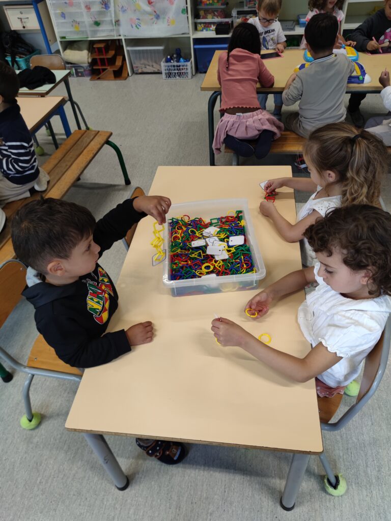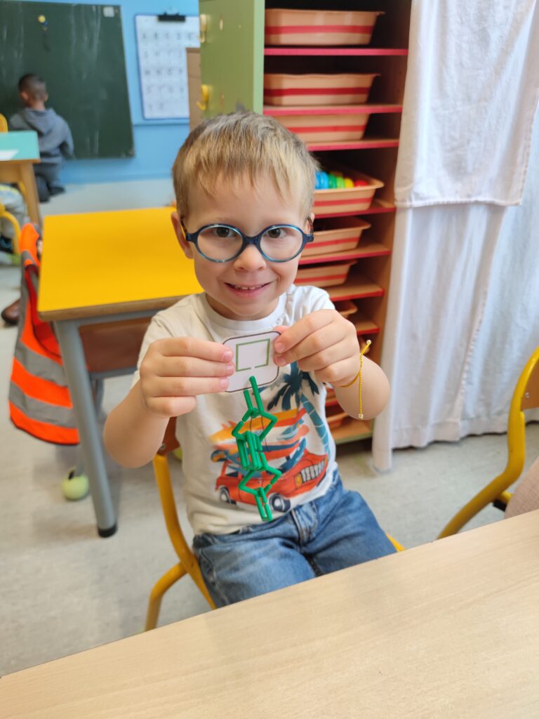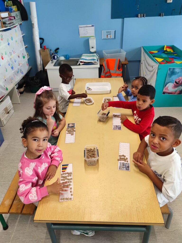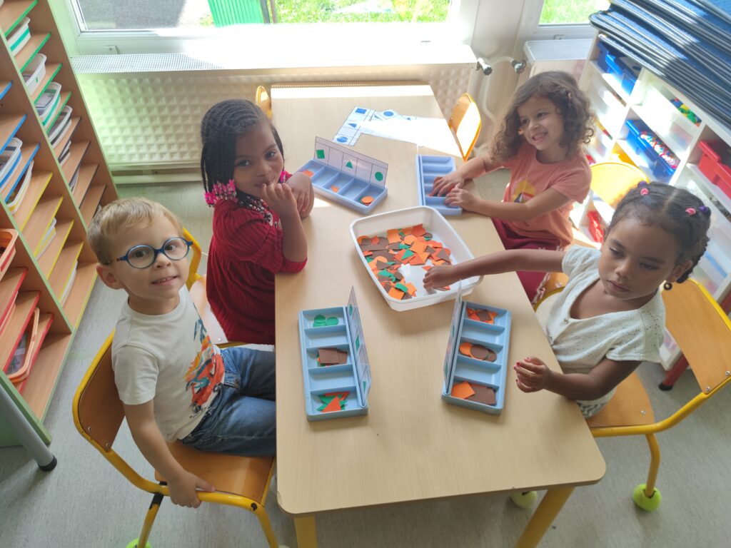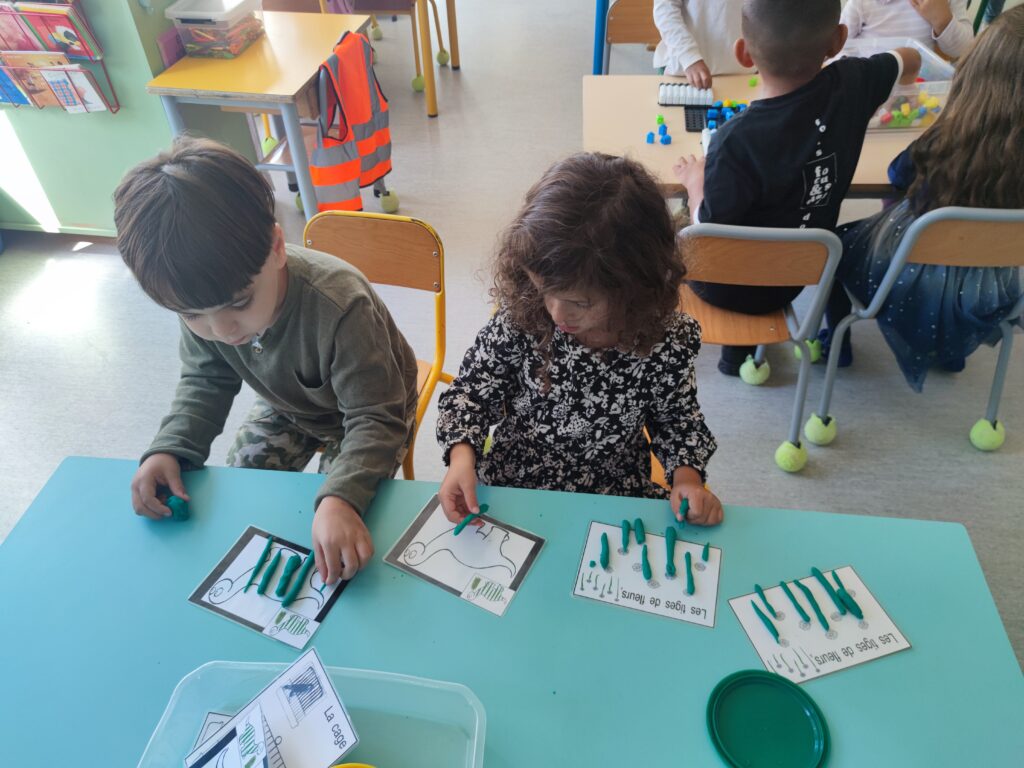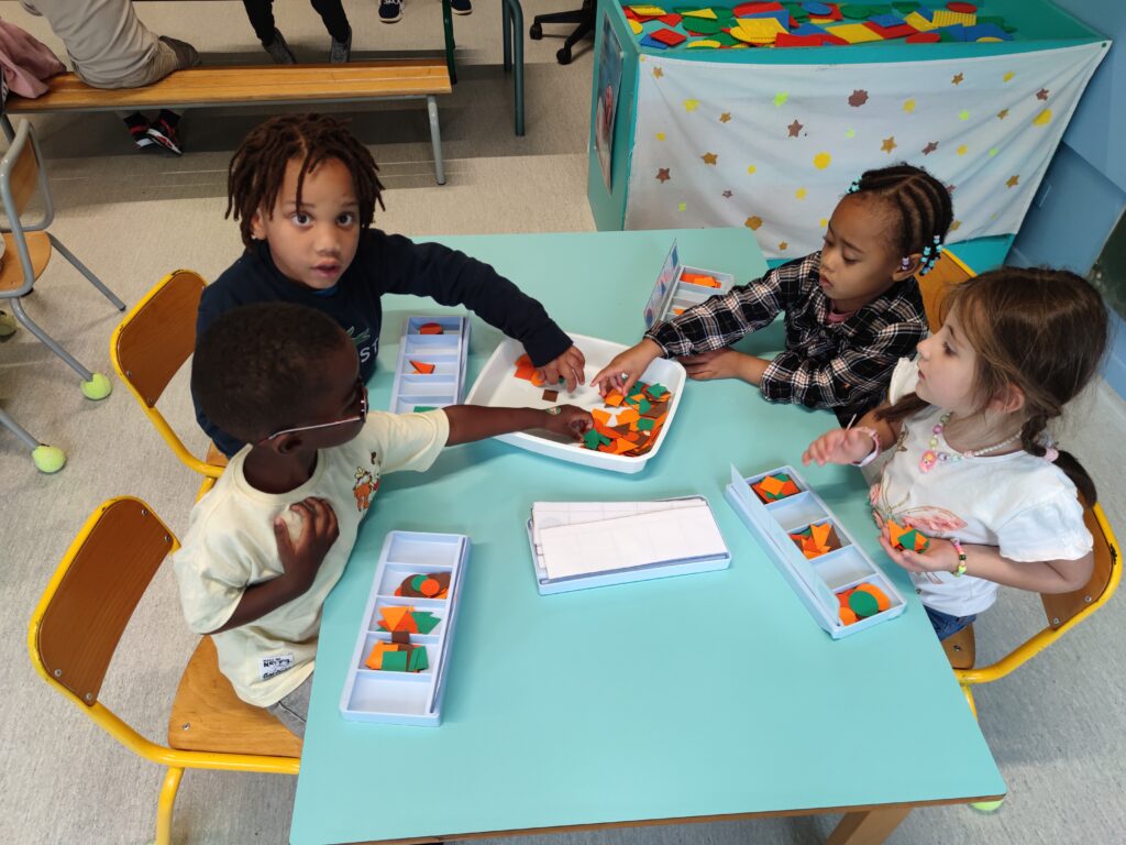 L’élève tire une carte de jeu. Il dénombre les formes et prends autant de cubes. Il place les cubes autour de sa plaque de jeu. Le premier joueur à finir le tour de sa plaque gagne le jeu.