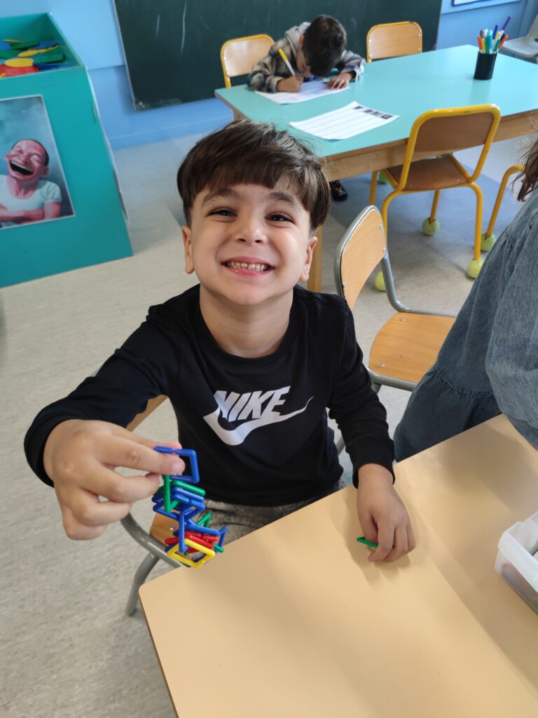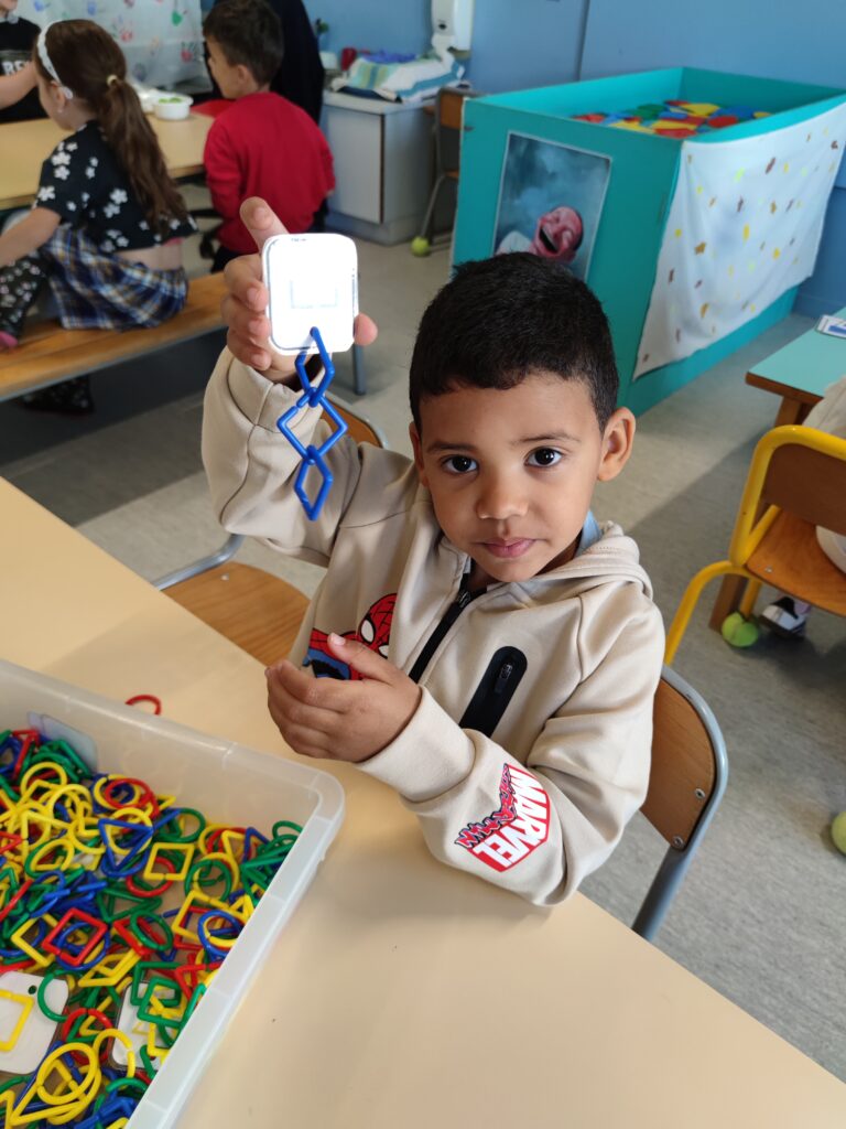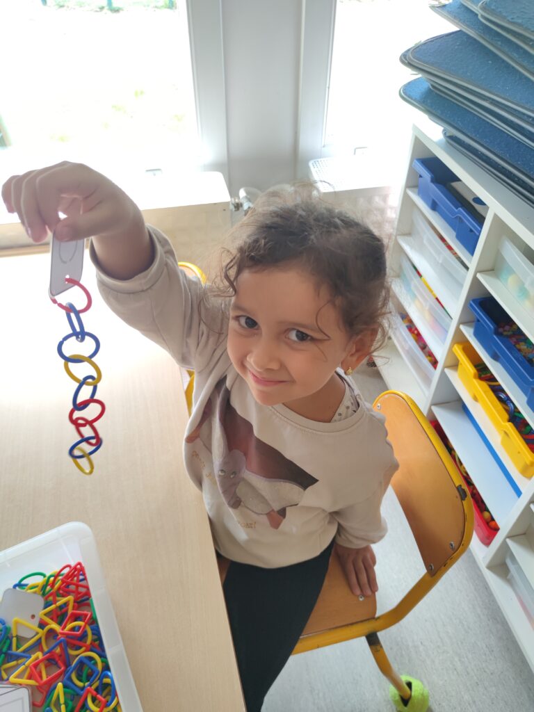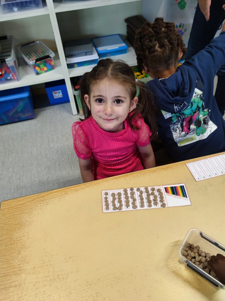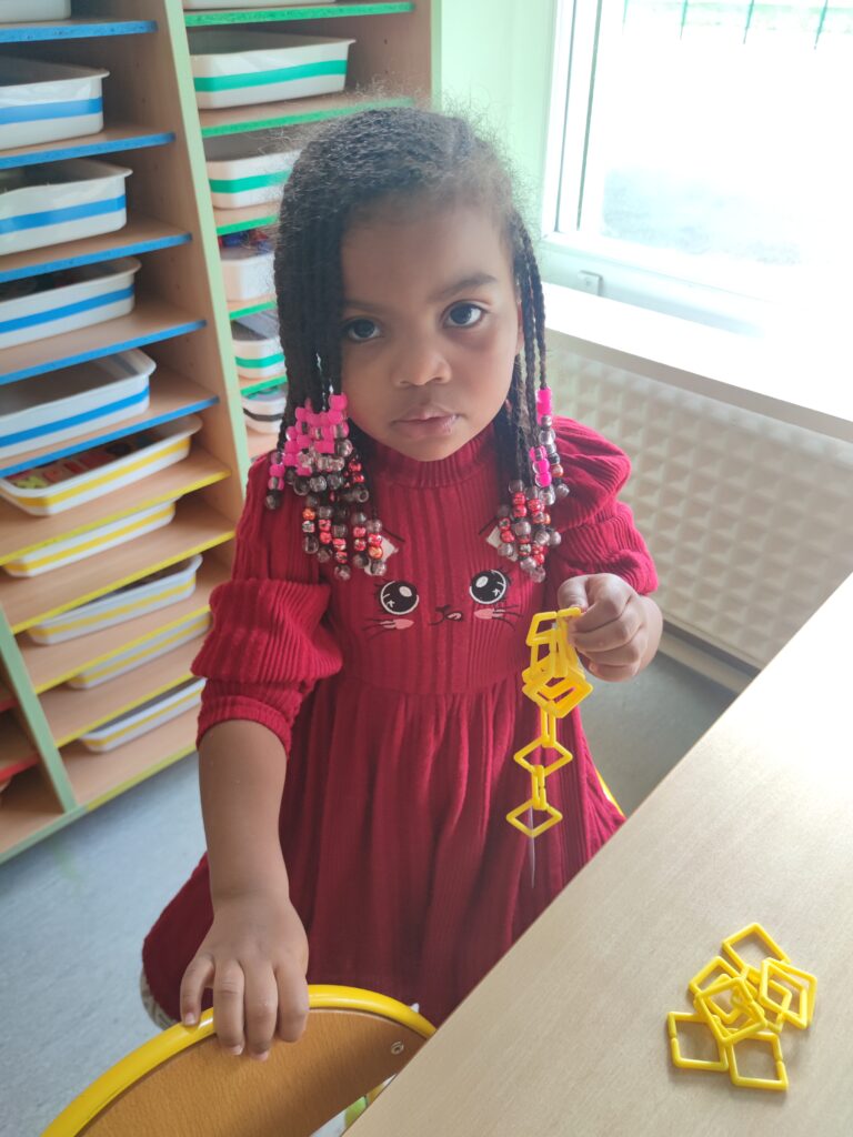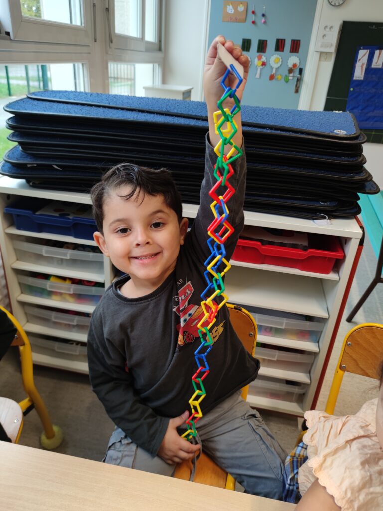 L’élève lance le dé, dénombre les doigts et prend autant de cubes. L’élève qui a la plus grande tour gagne la partie.
